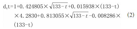 液氨壓力對密度的影響主要通過壓力P0影響溫度來體現,故液氨密度主要考慮溫度因素,在-50℃至50℃范圍內,液氨的相對密度d4t和溫度t之間的關系見式(2):