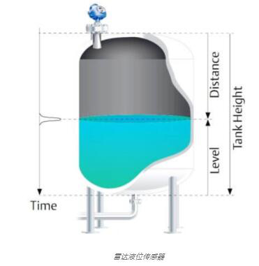 非接觸式脈沖雷達發出微波信號,該微波信號從產品表面反彈并返回傳感器。發射器測量發射和接收回波信號之間的時間延遲,并且車載微處理器使用以下公式計算到液面的距離: