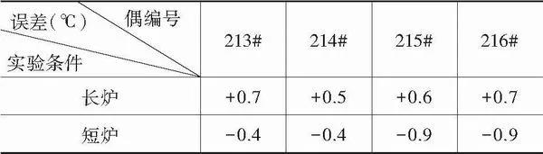 在我們實驗室的6cm熱電偶試驗爐(深度3cm)中升溫至6℃,然后隨爐冷卻至室溫。然后將冷端放入恒溫器中,分別在6cm熱電偶校準爐(長爐)和4cm熱電偶校準爐(短爐)中測量3℃的指示誤差。結果如表4所示。
