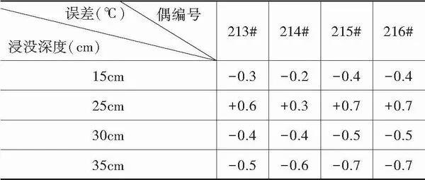將熱電偶浸入3℃恒溫油槽中不同深度,實驗結果如表5所示。